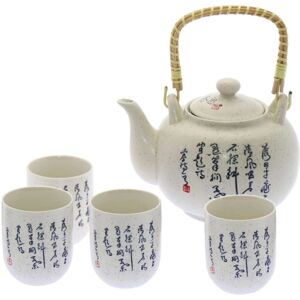 Service à thé chinois complet pour 6 personnes En céramique Dimensions de la boite : Hauteur 12 cm - Largeur 35 cm - Profondeur 25 cm Dimensions de la théière : Hauteur 13 cm - Diamètre 12 cm - contenance 0.8 litre Dimensions de la tasse : Hauteur 7.5 cm - Diamètre 6.5 cm - contenance 0.15 litre Ce service à thé chinois en céramique est un ensemble élégant et fonctionnel conçu pour les amateurs de thé souhaitant savourer des moments de convivialité et découvrir les traditions chinoises du thé. L'ensemble comprend une théière et 6 tasses assorties sans anses. La théière d'une capacité de 0,8 litre permet de préparer plusieurs tasses de thé, idéale pour des moments de partage avec des amis ou la famille. Les tasses sans anses, d'une contenance de 0,15 litre chacune, reflètent la simplicité et l'esthétique des services à thé traditionnels chinois. Leur design compact et sans poignée les rend faciles à manipuler tout en conservant la chaleur du thé