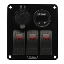 NONE Panneau de commutation avec testeur de voltmètre numérique, chargeurs USB 3.0, lumière interdite, adaptateur d'alimentation de voiture, bateau marin, caravane, 6 boutons, 24V, 12V