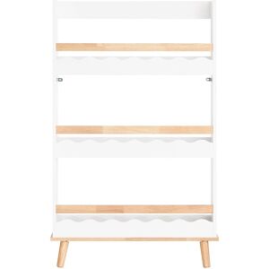 mélange de blanc et de bois lui confère une allure moderne et s'intègre facilement dans n'importe quel style de décoration.Cette petite bibliothèque pour enfants est constituée de 3 étagères ouvertes pour ranger les livres, les cahiers et les jouets de manière claire et ordonnée. Cela permet aux enfants de trouver ce qu'ils veulent en un coup d'œil.Notre meuble à livres pour enfants est fabriqué en MDF de qualité E1 et en bois d'hévéa, ce qui lui confère une structure solide et stable. De plus, il est doté d'un dispositif anti-basculement à l'arrière pour assurer une fixation solide de la bibliothèque au mur.Dimensions (L x l x h) : 75 x 15 x 120 cm. Capacité de charge : 30 kg. Poids du produit : environ 13 kg.