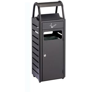 Corbeille rectangulaire en acier avec finition cataphorèse et poudrage époxy pour une utilisation en extérieur. Seau intérieur en acier galvanisé avec anse. Cendrier et corbeille bloquée par la porte frontale. Fermeture sécurisée par clef triangulaire, anti vandalisme. Isolation au sol par patins...