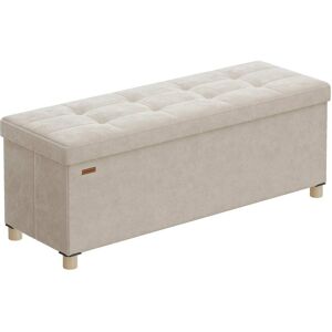 Marre du bazar qui perturbe l’harmonie de votre intérieur ? Découvrez ce banc de rangement SONGMICS, votre allié stylé pour tout ranger avec facilité. Ce cube de rangement pliable sert aussi de repose-pieds, alliant praticité et élégance en un seul meuble.Les atouts de ce tabouret en bref :Confort douillet : Le tissu doux et délicat assure une assise des plus agréables.Style chic : Le dessus capitonné et les pieds en bois subliment votre déco intérieure.Solide comme un roc : Supporte jusqu’à 300 kg grâce à ses panneaux renforcés et à ses pieds robustes.Grand espace de rangement : De dimensions 38 x 110 x 40 cm, il offre un volume de 112 L pour ranger vos affaires.Polyvalent : Parfait en tant que coffre de rangement, repose-pieds ou table basse dans n’importe quelle pièce.Caractéristiques :Couleur : Gris ardoiseMatériaux : Velours, panneau MDF, rembourrage en mousse, tissu non-tisséDimensions : 38 x 110 x 40 cm (P x L x H)Poids : 9,6 kgCapacité de charge statique maximale : 300 kgVolume : 112 LLivraison :1 x Banc de rangementPrécautions de SONGMICS :Avant de vous asseoir, veuillez bien recouvrir le pouf avec son couvercle.Évitez de mettre des objets surdimensionnés dans le pouf.La surface en velours de ce pouf de rangement peut présenter des nuances variables en raison de la nature du tissu. Si vous remarquez une couleur inégale, il suffit de brosser le tissu dans la même direction pour obtenir un aspect uniforme.