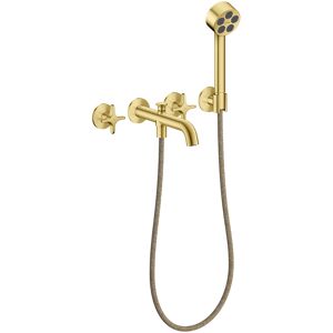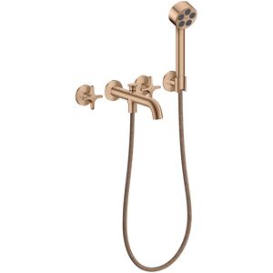 Mitigeur bain/douche 3 trous Hansgrohe AXOR One 48444330 se compose de : mitigeur de bain 3 trous, douchette à main, support de douche, flexible de douche 2 consommateurs Projection : 220 mm Raccord de type spray : jet normal Vannes céramiques chaud/froid 90° Déviateur à réinitialisation automatique Clapet anti-retour Taille de connexion : DN15 Type de connexion : corps de base Montage mural pression de service min. : 1 bar pression de service max. : 10 bar Type de jet de douchette : PowderRain