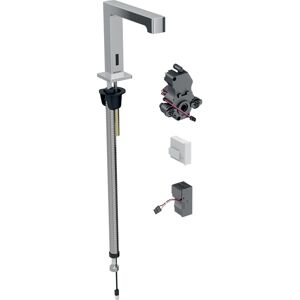 Geberit Brenta mélangeur infrarouge pour lavabo 116193211 pour prendre de l'eau du robinet pour les espaces publics et semi-publics pour installation dans Lavabos ou plans de travail pour installation dans des éléments de montage pour lavabos Batteur sur socle avec boîtier de fonction UP pour l'installation dans des ensembles de base pour les raccords de lavabo Montage du stand avec boîte de fonction UP pour connecter le froid Eau chaude / mélangée pour une utilisation avec des piscines en acier inoxydable Groupe de raccords I selon DIN 4109 gâchette de chasse automatique Reconnaissance utilisateur infrarouge Capteur infrarouge autoréglable à l'épreuve du vandalisme Strahlregler débit Strahlregler via Strahlregler Réglage de la température via le mélangeur (uniquement pour les versions avec mélangeur) L'eau ne peut pas être réglée purement chaude ou purement froide (uniquement pour les versions avec mélangeur) Alimenté par pile Batterie suffisante pour environ 200 000 déplacements Avertissement de batterie faible Mode d'économie d'énergie réglable Économies d'eau grâce à la technologie de balayage réactive à deux faisceaux Les fonctions peuvent être définies et interrogées avec un téléphone portable de service Programme d'économie d'eau réglable Programme de rinçage à intervalles réglable Rinçage continu réglable individuellement Le déclenchement du rinçage peut être désactivé à l'aide d'un téléphone portable propre diverses fonctions peuvent être réglées manuellement avec Rückflussverhinderer intégré Unité fonctionnelle avec filtres à panier intégrés composé d'un robinet pour lavabo avec capteur infrarouge et tuyau de raccordement Electronique de commande Unité fonctionnelle Boîtier de batterie 2x piles alcalines type AA 2000 5 V Clé pour Strahlregler Matériel de fixation