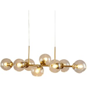 La suspension Carlotta est une pièce imposante et élégante, agrémentée de 8 abat-jours en verre transparent qui lui confèrent un charme particulier. Sa structure allongée en fait le luminaire idéal pour illuminer une grande salle à manger ou un salon. La hauteur de Carlotta est ajustable, offrant ainsi une grande flexibilité d'utilisation. Les abat-jours présentent une ouverture subtile, ajoutant une note d'originalité à son design. Les ampoules E27 ne sont pas incluses, vous permettant de choisir celles qui correspondent le mieux à vos besoins d'éclairage. N'hésitez pas à découvrir également la version en verre fumé pour une atmosphère plus intimiste. - Ampoule(s) non-fournie(s).