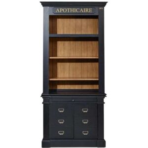 Description du produit :La bibliothèque GASPARD, fabriquée par Robin des Bois, revisite le mobilier d'apothicaire avec une touche contemporaine.Ce meuble associe des matériaux de qualité et un design pensé pour un rangement optimisé et élégant.Sa structure et sa façade en pin massif, peintes et patinées à la main, offrent une finition noire satinée, protégée par un vernis nitrocellulosique.Les côtés, le dessus et les tablettes en médium se marient harmonieusement avec le fond en lambris, apportant du caractère à l'ensemble.Pratique et modulable, GASPARD dispose de quatre tablettes réglables et amovibles sur crémaillère en pin, permettant une organisation adaptée à vos besoins.La partie basse, dotée de deux portes et d'une étagère intérieure, offre un espace de rangement fermé et discret.Une tirette supplémentaire vient compléter ses fonctionnalités.Idéale pour structurer votre espace de vie ou de travail, cette bibliothèque deviendra une pièce maîtresse de votre décoration, tout en offrant des solutions pratiques de rangement.Le + produit :Son design inspiré des anciennes pharmacies, ses rangements modulables et sa finition travaillée font de GASPARD une pièce de caractère et pratique au quotidien.