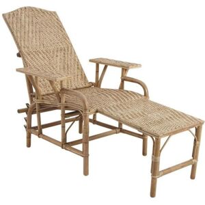 Aspect : Matériau principal = Manau • Matériaux secondaires = Lame de rotin antique • Dimensions : Hauteur (en cm) = 60,00 • Hauteur du dossier (en cm) = 72 • Hauteur siège (en cm) = 40 • Longueur (en cm) = 76,00 • Profondeur (en cm) = 175,00 • Profondeur siège assis (en cm) = 55 • Autres caractéristiques : Compatible extérieur = Non • Dossier réglable = Oui à 4 positions dont l'horizontale + repose-pied escamotable • Entretien = Dépoussiérer régulièrement + effectuer un nettoyage plus en profondeur tous les 3 mois. • Pliable = Oui • Poids (en kg) = 8,00 • • Chaise longue en manau (rotin écorcé) • Finition antique • Pliante pour un rangement gain de place • Extensible • Longueur 175 cm , Largeur 76 cm , Hauteur 60 cm , Hauteur de siège 40 cm