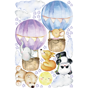 Des stickers animaux pour votre déco ! Avec les stickers muraux animaux multicolore et ce Stickers montgolfières et animaux saltimbanques, vous vous approprierez enfin votre intérieur ! Dimension du sticker : La planche de H80 x L60 cm, le sticker oiseau mesure H5 x L7,5 cm – le sticker renard et s