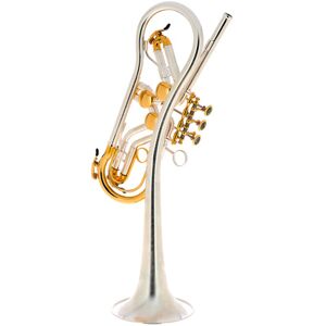 Schagerl Spyder Bb-Trumpet S, Trompette en Sib, 3 palettes, Pavillon en laiton doré, Diamètre du pavillon: 130 mm, Perce: L, Son chaud, presque comme un bugle, Finition: Plaqué argent mat avec pièces plaquées or@+*Livrée sans étui*