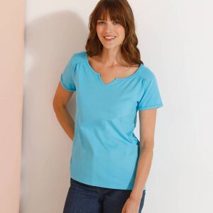 Blancheporte T-shirt Col Tunisien Uni, Coton - Femme Bleu 52