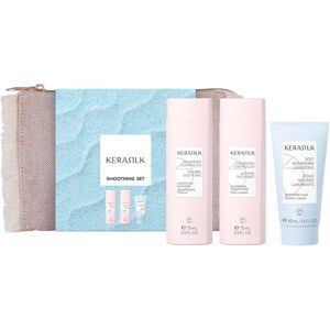 Le kit KERASILK Smoothing contient : 1 x KERASILK Shampooing disciplinant, 250 ml1 x KERASILK Conditionneur dompteur, 200 ml1 x KERASILK Masque disciplinant, 200 ml KERASILK Shampooing disciplinant - Nourri. Souplesse et douceur. Shampooing nettoyant doux à la soie biomimétique et à l'huile de karité. Notre formule 100 % végétalienne apaise les frisottis et la structure capillaire dans son ensemble, tout en nourrissant intensément les cheveux - pour une sensation de douceur luxueuse. Avantages : Nourrit intensément les cheveux et les rend doux et souples des racines aux pointes.Apaise les zones rebelles, combat les frisottis et lisse l'ensemble de la structure capillaire.Améliore la contrôlabilitéÉlimine la saleté, le sébum, l'huile, les polluants et les résidus de produits et est doux pour le cuir cheveluNeutralise l'eau dure et empêche ainsi les résidus minéraux, les cheveux restent dans un état neutre et équilibré. Utilisation : faire mousser et rincer. Idéal pour : Cheveux cassants, frisés et rebelles ; cheveux difficiles à contrôler et à coiffer ; cheveux bouclés et ondulés. KERASILK Conditionneur dompteur - Nourri. Souplesse et douceur. Après-shampooing riche à la soie biomimétique et à l'huile de karité. Notre formule 100 % végétalienne nourrit intensément, apaise toute la structure du cheveu et améliore nettement le contrôle - pour des cheveux souples et luxueux. Avantages : Nourrit intensément les cheveux et les rend lisses et souples des racines aux pointes.Apaise les zones rebelles, combat les frisottis et lisse toute la structure capillaire.Améliore le contrôle et soigne intensément - pour un démêlage plus facile Application : Masser dans les cheveux. Laisser agir 1 minute. Rincer. Idéal pour les cheveux : Cheveux cassants, frisés ou indisciplinés ; cheveux difficiles à contrôler et à coiffer ; cheveux bouclés et ondulés. Produit neutre pour le climat : ce produit est compensé en CO2. KERASILK Masque disciplinant - Nourri. Souples et doux. Luxueux et luxueux. Masque pour un soin intensif en profondeur, avec de la soie biomimétique et de l'huile de karité. Notre formule 100 % végétalienne soigne intensément, dompte et nourrit même les cheveux les plus cassants - pour un contrôle exceptionnel des frisottis, une magnifique brillance, une maîtrise durable et des cheveux jusqu'à 6,7 fois plus souples. Les avantages : Contrôle durable des frisottis, meilleure maîtrise et souplesse jusqu'à 5 shampooings.Jusqu'à 6,7 fois plus de souplesseJusqu'à 67 % de frisottis en moins Application : Masser les cheveux. Laisser agir 5 minutes ou plus. Rincer ensuite. Idéal pour : les cheveux cassants, frisés ou rebelles ; les cheveux difficiles à contrôler et à coiffer ; les cheveux bouclés et ondulés. Produit neutre pour le climat : ce produit est compensé en CO2.