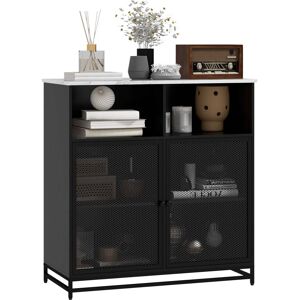 Description:Métamorphosez votre intérieur avec le buffet HOMCOM, un meuble de salon avec deux armoires, portes en treillis et dessus aspect marbre. Étagères modulables, idéal pour l'entrée ou comme buffet. Structure anti-basculement pour une sécurité optimale. Équilibre entre utilité et design !caractéristique:● Buffet de salle à manger doté de deux armoires avec compartiments ouverts pour un accès facile au rangement; ● Une étagère ajustable offre trois options de hauteur pour répondre aux besoins; ● Le dessus à finition façon marbre ajoute une touche d'élégance; ● Le dessus est facile à nettoyer avec un chiffon; ● Les panneaux de porte en maille permettent une circulation de l'air, évitant les odeurs de moisi; ● Meuble de cuisine de rangement avec design anti-basculement pour une sécurité accrue; ● Montage nécessaire;Spécification:● Couleurs : blanc, noir; ● Matériaux : panneau de particules, acier; ● Dimensions totales : 86l x 40P x 90H cm; ● Dimensions du compartiment ouvert : 40,5l x 38P x 21H cm; ● Dimensions internes du placard : 40,5l x 35P x 55H cm; ● Hauteur des pieds : 9 cm; ● Charge max. recommandée : 45 kg (totale), 15 kg (plateau), 15 kg (compartiment); ● Réf. : 83B-020V00BK;contenu du colis:● 1 x Buffet;