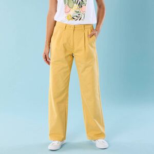 Taille• Entrejambe 69 cm environ, idéale si vous mesurez moins de 1m60Composition• Crêpe 95% polyester, 5% élasthanneDescription• Coupe large confortable• Ceinture plate devant avec patte fantaisie fermée par 2 boutons, taille élastiquée au dos• 2 poches italiennes• 2 plis couchés de chaque côté devant