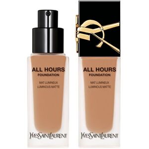 YSL ALL HOURS GLOW Fond de Teint Lumineux 24H - Haute Couvrance 25 mlDescription : Le Fond de Teint All Hours Glow est doté d'une formule légère qui offre une couvrance modulable pour l'éclat naturel. Conçu pour uniformiser, lisser et illuminer instantanément la peau.SES EFFETSOffre un éclat naturel, modulable et longue tenue. Conçu pour uniformiser, lisser et illuminer instantanément la peau.SES BÉNÉFICESFond de teint lumineux extra longue tenue à la finition haute couture impeccable et radieux.ÉCLAT NATUREL : Une formule légère qui offre une couvrance modulable pour un éclat naturel. Le teint est instantanément uniformisé, lissé et illuminé.FORMULE ENRICHIE EN ACTIFS : Formule à base de sérum enrichie en acide hyaluronique et niacinamide. Confort et hydratation intense toute la journée. La peau est visiblement plus lumineuse et repulpée.TENUE LONGUE DURÉE TOUTE LA JOURNÉE : Formule à toute épreuve. Teint radieux impeccable et résistant, même après une journée intense et active.Conseils d'Utilisation : COMMENT AVOIR UN TEINT MAT LUMINEUX PARFAIT ? La routine teint mat lumineux par YSL Etape 1 : Unifiez avec le fond de teint ALL HOURS Etape 2 : Corrigez avec le correcteur anticernes ALL HOURS Etape 3 : Illuminez avec le stylo TOUCHE ECLAT (liens directifs à chaque fois) COMMENT APPLIQUER SON FOND DE TEINT ? Agitez avant emploi. 1. Déposez 1 ou 2 gouttes de fond de teint sur le dos de votre main. 2. Prélevez la matière • Au doigt pour une couvrance naturelle • Au pinceau (lien vers le pinceau) pour une haute couvrance uniforme Puis la déposer en touches légères sur le front, le nez, les pommettes et le menton, ou uniquement sur les zones qui nécessitent d'être corrigées 3. Estompez la matière en lissant par gestes circulaires et étirez vers l'extérieur du visage.Ingrédients :AQUA / WATER / EAU ● DIMETHICONE ● BUTYLENE GLYCOL ● ALCOHOL DENAT. ● DICAPRYLYL CARBONATE ● GLYCERIN ● TRIMETHYLSILOXYSILICATE ● UNDECANE ● NIACINAMIDE ● DIISOPROPYL SEBACATE ● PEG-10 DIMETHICONE ● TRIDECANE ● MACADAMIA INTEGRIFOLIA SEED OIL ● PHENYL TRIMETHICONE ● ISODODECANE ● SYNTHETIC FLUORPHLOGOPITE ● DISTEARDIMONIUM HECTORITE ● SODIUM HYALURONATE ● SORBITAN ISOSTEARATE ● PEG-30 DIPOLYHYDROXYSTEARATE ● PHENOXYETHANOL ● SILICA SILYLATE ● DISODIUM STEAROYL GLUTAMATE ● MAGNESIUM SULFATE ● BIS-PEG/PPG-14/14 DIMETHICONE ● PARFUM / FRAGRANCE ● TOCOPHEROL ● PERLITE ● SILICA ● ALUMINUM HYDROXIDE ● JASMINUM OFFICINALE FLOWER EXTRACT / JASMINE FLOWER EXTRACT ● PENTAERYTHRITYL TETRA-DI-T-BUTYL HYDROXYHYDROCINNAMATE ● [+/- MAY CONTAIN / PEUT CONTENIR CI 77891 / TITANIUM DIOXIDE ● CI 77491, CI 77492, CI 77499 / IRON OXIDES ●]