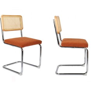 Lot de 2 chaises - Paula• Structure en acier noir• Dossier en hêtre massif peint en noir et cannage naturel• Assise en tissu bouclé rouille 600 g/m²• Garnissage : mousse 28 kg/m3• Dimensions : 48,5x55x81 cm• Largeur de l'assise : 48,5 cm• Profondeur de l'assise 41 cm• Hauteur de l'assise 48 cm• Char