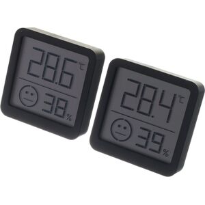 TFA Thermo-Hygrometer BK Set of 2, Set thermo-hygromètre numérique, Composé de 2 pièces, Contrôle de la température et de l'humidité intérieures, Zone de confort avec smiley, Fixation fexible avec un tampon adhésif et un support, A suspendre ou à poser, Petit et compact, Plage de mesure de la température: -10 à +50°C, Plage de mesure de l'humidité: 10 à 99%, Pile 3 V CR2032 (une par appareil) incl., Dimensions (L x l x H): 46 x 13 x 43 mm, Poids pièce: 25 g, Couleur: Noir