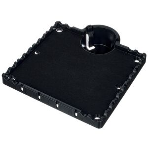 "Tama Accessory Tray, Table de rangement, Dimensions: 235 x 254 mm, Bords avec évidements pour baguettes, Porte-boisson, Trous pour câbles sur les bords, Taraudage 5/8"" pour montage sur pied, Poids admissible max.: 2,5 kg, Pince MC61 Fast Clamp pour fixation sur hardware de batterie, 2 crochets en S pour poser par exemple des écouteurs intra-auriculaires"
