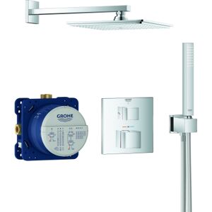 Grohe match4 Cube système de douche 34741000 composé d' Cube thermostat Grohtherm match4 avec inverseur 2 voies intégré SmartBox Rapido bras de douche Rainshower 6cm Rainshower Allure 230 douche de tête Euphoria Cube main match0 9 5 l/min paroi match0 Euphoria Cube coude de raccordement mural Euphoria Cube Flexible de douche Silverflex 125 cm