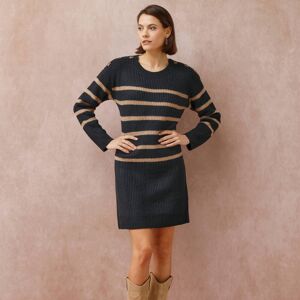 Blancheporte Robe-pull Rayée Manches Longues, Épaules Boutonnées - Femme Bleu 50