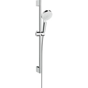 set de douche hansgrohe 27652000 avec système anti-calcaire QuickClean Jet normal Pomme de douche taille 85 mm Flexible de douche sans pivot Angle d'inclinaison réglable de 90 ° Le curseur fait un panoramique de gauche à droite et de haut en bas Max. Débit à 3 bar 5 7 l / min composé d'une douchette à main Crometta 85 Green (28561000) Douche Unica Crometta 1930 90 m (27614000) ou 1930 65 m (27615000) avec Metaflex douche 2000 60 m (28266000) Disque de compensation de tuile (gris) Support mural en plastique chromé