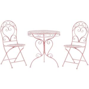 Un salon de jardin de type bistrot qui saura ajouter à votre balcon ou terrasse une touche de style provençal. Fabriqué à partir d’acier enduit de poudre, il charme avec son effet vieilli et ses ornements floraux. Cet ensemble de repas de jardin se compose d’une table ronde et de 2 chaises, un choix idéal pour créer votre petit-déjeuner romantique à deux dans n'importe quel extérieur. Les chaises ainsi que la table sont pliantes, donc parfaites pour tous les petits espaces et faciles à ranger hors saison. Un petit salon de jardin que vous allez adorer.