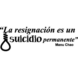 Des stickers muraux citations pour la déco ! Avec les stickers citation et ce Sticker citation La resignacion ... (Manu Chao), vous pourrez enfin décorer l'intérieur de votre cuisine à votre guise avec leur aide ! Vous manquez peut-être le courage de realiser vos rêves? Ce sticker "La resignacion e