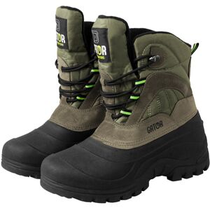 Les chaussures Delphin GATOR sont idéales pour les expéditions plus extrêmes dans les saisons froides. La bordure élevée en caoutchouc est au niveau de la cheville ; les flaques d'eau ou la neige fondue ne sera aucun problème pour GATOR. En plus, cette partie est très facile à nettoyer. Les chaussures GATOR ont aussi les ergots aux talons pour se débotter plus facilement. Le reste de la chaussure est en combinaison d'un tissu nylon et cuir artificiel. Ces matières sont durables et faciles à imprégner. La languette est cousue jusqu'à 17 cm de la taille de chaussure pour vous permettre de marcher même dans les eaux plus profondes pour quelques moments. Le système d'attache des lacets a des œillets et un anneau métallique en haut. L'intérieur est en micro laine polaire. Le confort absolu est assuré par la couche en microfibre synthétique entre la couche externe et interne. Ses qualités sont idéales pour les pêcheurs, chasseurs et pour tous qui aiment les randonnées dans la nature. Malgré leur apparence, elles sont assez légères et ne fatiguent pas vos pieds. Une paire des chaussures taille 43 pèsent seulement 1 200 g.