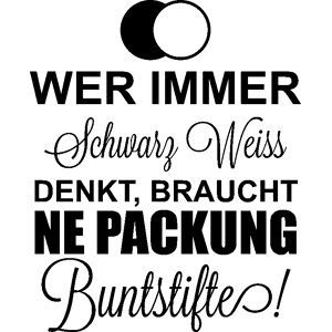 Des stickers muraux citations pour la déco ! Avec les stickers citation et ce Sticker citation wer immer schwarz weiss denkt, vous pourrez enfin décorer l'intérieur de votre cuisine à votre guise avec leur aide ! Soyez toujours fière de vous-même, foncez en avant et continuez d'être optimiste avec