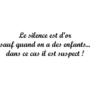 Des stickers muraux citations pour la déco ! Avec les stickers citation et ce Sticker citation le silence est d'or sauf quand on a des enfants, vous pourrez enfin décorer l'intérieur de votre maison à votre guise avec leur aide ! Les stickers muraux citation, c'est la richesse des mots pour une déc