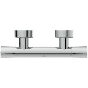 Thermostat de douche Ideal Standard CeraTherm T100 A7229AA DN15 Disconnecteur anti-retour DVGW à sécurité intrinsèque Corps frais Projection 78 mm Raccords en S et écrous-raccords recouverts de rosaces métalliques plates et rondes (réglables de 137 à 163 mm) Poignées en métal Cartouche thermostatique avec élément d'expansion de cire Fonction anticalcaire Réglage de la température de l'eau chaude avec protection anti-brûlure Régulation de la quantité d'eau avec bouton d'économie ECO et rondelles d'étanchéité en céramique Cartouche RV côté eau chaude avec soupape de surpression intégrée sert à relâcher la pression (protéger la vanne) à des pressions supérieures à 16 bars Comportement sonore DIN 4109 Groupe 1