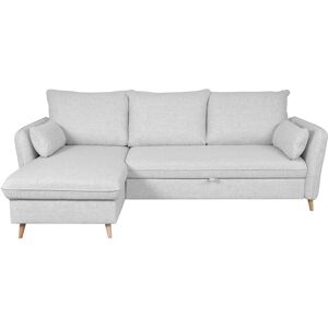 DRISS, un canapé tout confort !Ce canapé d'angle voit les choses en grand. Canapé, lit, rangement... DRISS est un canapé trois-en-un aux dimensions généreuses et au style superbe. Un joli revêtement en polyester enveloppe assise et dossier pour un rendu ultra cosy. Il est complété par quatre pieds en bois massif, aussi solides que déco. Grâce à son style scandinave affirmé, ce canapé d'angle convertible est un indémodable facile à vivre. Avec son épais rembourrage et ses jolis angles arrondis, ce n'est pas une assise de salon classique : c'est une véritable invitation à la détente.Le rembourrage de ce canapé d'angle réversible est composé de deux couches de mousse, une couche de mousse haute résilience pour la tenue et une couche de ouate pour le confort. Une fois l'assise tirée, ce convertible offre une belle surface de couchage (L140 x L205 cm) pouvant accueillir 2 personnes. La méridienne renferme un coffre de rangement, pratique pour le linge de lit.Ce canapé d'angle est réversible : vous pouvez positionner l'angle à droite comme à gauche. Le revêtement de ce canapé scandinave est en tissu déperlant pour faciliter son entretien. Canapé lit fabriqué en Europe. Livré prêt à monter.