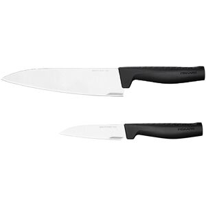 • Ensemble pratique de couteau de chef (longueur de la lame : 20 cm) et de couteau d'office (longueur de la lame : 10,9 cm) pour les professionnels et les cuisiniers amateurs, Parfaitement adapté aux droitiers et aux gauchers • Grande puissance de coupe grâce aux lames tranchantes en acier japonais, Technologie révolutionnaire LZR-EDGE pour un aiguisage et une coupe durables • Préhension agréable et maintien ferme grâce a une poignée ergonomique et structurée en plastique de qualité, Poids équilibré pour plus de confort • Grande durabilité, Nettoyage facile, Lavable au lave-vaisselle, Lavage a la main recommandé pour un tranchant de longue durée • Design finlandais Spécifications: • Longueur totale : 33,1 cm et 22,8 cm • Matériaux : Acier de qualité/Plastique • Couleur : Argent/Noir Photo d'illustration >