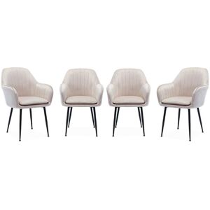 Les + produit :Coussin d'assise déhoussable Hauteur des pieds réglablesFauteuil à bouclette Notre collection Shella, met à l’honneur le confort avec son assise moelleuse et son dossier réconfortant. Coquette et élégante, cette collection allie un design vintage, simple et chic. Son tissu velours ou bouclette a été choisi avec soin pour apporter toute la douceur qu’il manquait à vos intérieurs. Ses pieds en métal quant à eux ne manqueront pas d’ajouter un côté moderne à votre meuble. Shella est disponible en plusieurs couleurs et tissus ! Des fauteuils coquets et confortables Ces fauteuils sont le complément parfait de n'importe quelle pièce ! Leur design simple et vintage ne manqueront pas de vous faire craquer ! Leur joli tissu bouclette ainsi que leur assise douillette sont la combinaison parfaite pour ajouter une touche de confort et de chaleur à votre pièce. Quant à leurs pieds en métal noir mat réglables, ils apporteront un look moderne à ce lot de 4 fauteuils qui s'accordera avec n'importe quel décor. Le coussin d'assise est déhoussable pour un entretien plus facile. Que vous les utilisiez comme fauteuil dans votre salon ou comme assises pour votre coiffeuse dans votre chambre à coucher, ces fauteuils matelassés apporteront à coup sûr une touche d'élégance à votre intérieur. N'attendez plus et succombez à leur charme dès aujourd'hui !Caractéristiques Coussin d'assise : OuiPoids net : 6kgGarnissage assise : Mousse polyuréthane ( densité : 24kg/m3 )Garnissage dossier : Mousse polyuréthane ( densité : 24kg/m3 )Garnissage accoudoirs : Mousse polyuréthane ( densité : 24kg/m3 )DimensionsFauteuil : L 57 x P 59 x H 84,5Coussin d'assise : L 40 x P 42cmEpaisseur du coussin d'assise : 3cmDossier : L 53 x H 41cmHauteur d'accoudoir : 64cmPieds : Ø2,5 / 1,5 x H 40cm