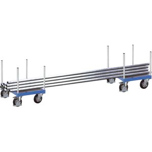 Chariot en acier avec 4 montants amovibles, pouvant transporter jusqu'à 1200 kg de charges. Elles permettent la manutention de charges longues et lourdes en les utilisant par 2. Construction très robuste, solidement mécano-soudé en tube d'acier; avec montants en acier emboîtables de longueur 610 ...