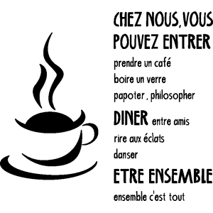 Des stickers cuisine pour votre déco ! Avec ce stickers pour la cuisine représentant un Sticker citation cuisine Chez nous, vous pouvez entrer ... vous pourrez décorer votre intérieur de manière originale et facile! Vous allez pouvoir donner une nouvelle vie à cette pièce si fréquemment utilisée !