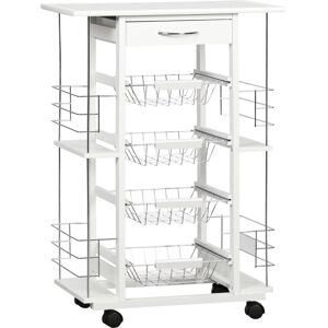 Homcom Chariot de service desserte de cuisine à roues métal bois pin blanc