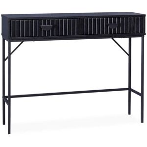 Les + produitRainuré 2 tiroirs Cette console apporte une élégance discrète à votre salon, couloir ou chambre. Les fines rainures qui la parcourent ajoutent une touche d'originalité à votre intérieur. Avec deux grands tiroirs, elle offre une fonctionnalité remarquable pour ranger clés, courriers, chargeurs, et gants à portée de main. Placez des bougies, un vase et une coupelle sur son plateau pour une décoration pratique et esthétique. Transformez votre espace en un lieu alliant style et utilité avec cette console.Console : L 100 x P 29 x H 79,5cmEpaisseur des panneaux : 1,5cmTiroirs (intérieur) : L 42 x P 23 x H 8cmTiroirs (extérieur) : L 47,9 x H11,4cmPieds : H 63,5cmPoids net : 13,9kg