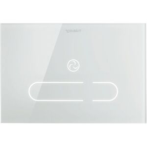 Duravit DuraSystem Duravit plaque WD5003012000 Déclenchement encastré contrôlé par infrarouge depuis l'avant sans boutons mécaniques L'éclairage des touches s'active lorsque vous approchez Le rinçage peut être déclenché par le toucher ou sans contact pour montage en surface Technologie de rinçage en 2 quantités Fonctionnement avec basse tension 24 V CC SELV Degré de protection IP X4 Classe de protection III avec connecteurs anti-confusion consistant en une extraction des odeurs Capteur de proximité infrarouge Rinçage hygiénique Rinçage automatique Fonction de nettoyage Éclairage de nuit Fonction de verrouillage Alimentation électrique de secours Fonctions réglables par télécommande