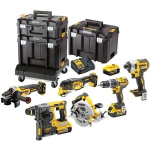 DeWALT DCD796 Perceuse visseuse a percussion La perceuse visseuse à percussion sans fil DCD 796 comporte un moteur sans balais pour plus de puissance, et d'une transmission entièrement métallique à 2 vitesses avec 15 réglages de couple différent pour une précision optimale. Grâce à son design ultracompact et léger, la perceuse à percussion est idéale pour travailler dans des espaces confinés. La DCD 796 possède un mandrin 13 mm autobloquant tout en métal et d'une lumière LED avec 3 positions de réglage pouvant éclairer jusqu'à 77 lumens. Pour plus de confort la perceuse à percussion est équipée d'une poignée ergonomique (Grip) en caoutchouc. Spécifications techniques • Puissance utile: 460 watts • Vitesse à vide: 0-550 / 2000 tr/min • Coups par minute: 0-9350 / 34000 cps/min • Voltage: 18 V • Couple (soft / hard): 27Nm / 70Nm • Poids (sans batterie): 1250g DeWALT DCF887 Visseuse a Chocs • Cette nouvelle visseuse a chocs est plus puissante et plus efficace que jamais. • L’équilibre est amélioré et le poids est réduit. Le boîtier est plus compact • Plus polyvalente grâce aux 3 vitesses • Couple +24% et vitesse +35% par rapport au modele précédent • Adapté pour le vissage tres précis en mode ’Precision Drive’ Spécifications techniques • Tension 18 V • Couple 205 Nm • Puissance délivrée 400W • Vitesse a vide 0 - 3250 tr/min • Impacts par minute 3800 imp/min • Contrôle amélioré 3 vitesses (0-1000 / 0-2800 / 0-3250 trs/min) • Poids avec batterie 1,5 kg DeWALT DCH273 Perforateur-burineur SDS-Plus 2,1 J • Leader dans sa catégorie grâce à ses performances garantissant 90 trous à grande vitesse (Ø 10 x 80 mm) pour chaque charge • Moteur Brushless offre une plus grande durabilité et une autonomie maximale • Stop de rotation pour les travaux de burinage légers dans du plâtre et des tuiles, et un stop impact pour seulement un mode rotation pour percer du bois ou du métal • Déclencheur électronique pour un meilleur couple et une durabilité maximale • La vibration la plus basse du marché: 6,6 m/s², réduit la fatigue de l'utilisateur et maximise le temps de productivité • Eclairage LED avec fonction retardateur pour une meilleure visibilité • Design compact, léger et ergonomique pour un meilleur confort et support durant les périodes d’utilisation prolongées • Idéal pour le perçage de trous de 4 à 24 mm de diamètre dans le béton, la brique ou divers matériaux Spécifications techniques • Energie de frappe: 2.1 J • Vitesse à vide: 0 - 1100 trs/min • Fréquence de frappe: 0 - 4600 cps/min • Porte-outils: SDS-Plus • Capacité de perçage - Bois: Ø 26 mm max. • Capacité de perçage - Métal: Ø 13 mm max. • Capacité de perçage - Béton: Ø 24 mm max. DeWALT DCG405 Meuleuse angulaire 125mm • Le systeme électronique anti-rebond empeche un fort rebond si la lame se coince dans le matériau • Une maille spéciale empeche les gros débris d'etre aspirés dans le moteur • Les dents en spirale en acier fraisé assurent une durabilité maximale et une tres faible vibration, ce qui...