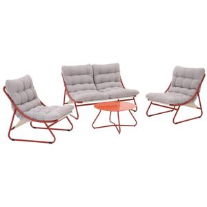 Oviala Salon de jardin bas 4 places en métal terracotta Rouge 131x85x87cm