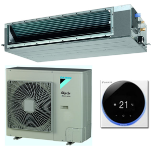 La climatisation gainable DAIKIN, Gamme Seasonal Classic, avec une puissance nominale de 13,40 kW / 15,50 kW, est adaptée pour un volume total Entre 310 m³ et 350 m³ (suivant isolation). Cette clim gainable (modèle FBA140A / RZASG140MV1 ), s'intégrera à votre maison avec une performance et une Forte pression statique. Ce modèle de pompe à chaleur gainable appartient à la classe saisonnière énergétique N.A/N.A (Froid et Chaud). %- Compatibilité RT2012 (Blocage en Chaud) : OUI - Fluide Frigorigène : R32 Garantie : 3 ans Pièces / 5 ans Compresseur