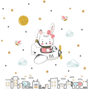 Des stickers enfant animaux pour votre déco ! Avec les stickers muraux animaux multicolore et ce Stickers enfant animaux lapine pilote de ligne, vous vous approprierez enfin votre intérieur ! Dimensions des stickers animaux : Ce sticker déco chambre enfant se compose de : 1 sticker lapine dans l'av