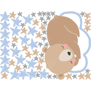 Des stickers enfants pour votre déco ! Avec les stickers muraux enfants et ce Sticker ourson brun sur le nuage + 60 étoiles, vous vous approprierez enfin votre intérieur ! Dimensions des stickers enfants: Ce sticker se compose du ourson brun sur un nuage et étoiles bleues, brunes et grises. Pour la