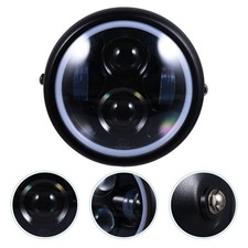 NONE Phares de moto rétro de 5.75 pouces, phares universels modifiés 12V à feux de croisement et de croisement, coque en fer, phares de moto circulaires