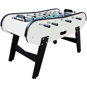 Catenaccio a décliné pour les amoureux de déco moderne, des tables qui sont unicolores et qui se fonderont dans un environnement design. Ici, le Sportivo Design blanc. Le baby foot blanc Sportivo Design, le rendez vous pour la famille Le baby foot Catenaccio Sportivo Design blanc a décidé de mettre en avant une table de jeux abordable qui conviendra parfaitement à la famille et vous rappellera les parties dans les cafés, et cela au meilleur prix. Cette table de football design ne possède pas de monnayeur, vous permettant de faire du baby foot gratuit et ainsi d'enchaîner les parties à volonté sur un babi neuf au prix d'un modèle d'occasion. Cette couleur immaculée est l'opportunité d'apporter un meuble décoratif, contemporain et épuré dans votre salon ou toute salle dans laquelle vous voudrez le mettre. En effet, ce modèle est composé d'un une caisse blanche apportant ainsi une touche de lumière dans votre intérieur. Vous pourrez vous affronter joueurs blancs Vs joueur gris argent ! Les barres sont télescopiques pour garantir la sécurité des plus jeunes afin d'éviter que les enfants ne se fassent mal lors des parties. Baby Foot Design Blanc, le choix de la sobriété Comme sur un babyfoot de Café Bonzini, les joueurs sont vissés directement au cou sur des barres en acier chromé d'un diamètre de 15.8 millimètres rendant ainsi ces barres très robustes. Son poids est de 71 kilos afin que vous puissiez jouer entre adultes sur un table stable qui ne bougera pas. Afin d'améliorer vos sensations de jeux, les barres sont équipées de ressorts et de caoutchoucs venant ainsi limiter le bruit et vous offrir un jeux plus fluide conformément aux tables de bistro. De même, les joueurs Blanc et Gris de la marque française Catenaccio sont fait d'aluminium. En outre, le terrain de jeux en gerflex et les cages en acier vous permettront de retrouver un jeux précis et contrôlé avec les même sensations de jeux que sur des modèles de café, et cela, à moindre prix ! D'ailleurs, les compte points présents derrière les buts sont noirs et argentés, et les cages en Acier sont de couleur noir pour apporter une touche de modernité à ce babyfoot Sportivo au Design Français. Enfin, ce modèle Catenaccio Sportivo Design Blanc vous sera livré rapidement (quelques jours si en stock) avec 4 balles en lièges naturel et vous bénéficierez d'une garantie constructeurs de 2 ans.