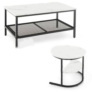 À propos de cet articleEnsemble de table basse 2 en 1 : Grâce à son design amovible, l'ensemble de table basse moderne vous permet de l'utiliser ensemble ou de le séparer pour obtenir une grande table basse rectangulaire et une petite table d'appoint ronde. De plus, les pieds peuvent être placés sous le canapé pour gagner de la place.Beaucoup d'espace de rangement : Dotée d'un design à 2 niveaux, la table basse rectangulaire et la table d'appoint ronde créent un espace de rangement suffisant pour conserver un livre, une tasse, des fruits, des plantes et plus d'articles. De plus, cette table basse gigogne vous offre un espace propre et bien rangé.Structure robuste et durable : Soutenue par un cadre en métal robuste, les tables d'appoint empilables présentent une grande durabilité. De plus, les repose-pieds réglables les maintiennent stables et la connexion ferme améliore l’ensemble de la structure.Diverses utilisations : La table basse amovible est dotée d'un plateau en faux marbre, qui est lisse et apporte une touche délicate et magnifique. De plus, les tables basses modernes conviennent à l'appartement, au salon, à la chambre et à diverses occasions.Assemblage et nettoyage faciles : Le colis comprend toutes les pièces nécessaires et un manuel étape par étape, vous permettant de terminer facilement l'assemblage. De plus, la table d'appoint aspect marbre nécessite peu d'entretien et vous évite des tracas.