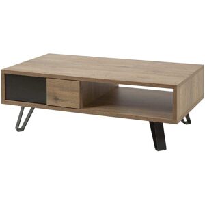 Altobuy Table basse 1 tiroir effet bois naturel et noir Marron 110x38x60cm