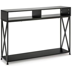 Attributs :Construction stable pour un service de longue durée : Cette table console est construite avec un cadre en fer solide et des planches épaissies, offrant une haute qualité pour une utilisation à long terme. De plus, la structure en forme de X des deux côtés peut fournir un soutien supplémentaire et empêcher la déformation.Conception anti-basculement et pieds réglables : Cette table de canapé peut être fixée au mur et se tenir solidement sans basculer, vous offrant une expérience d'utilisation fiable. De plus, la hauteur du pied est réglable, ce qui permet de garder l'équilibre sur des terrains accidentés.Solution peu encombrante : Conçue dans une structure mince, cette étagère peut s'adapter dans un espace étroit pour tirer pleinement parti de la pièce. Un dessus spacieux, 2 compartiments et une étagère inférieure surélevée seront idéaux pour ranger vos articles,ou des nécessités quotidiennes, rendant votre pièce plus propre.Style chic et large application : Une structure simple avec une forme rectangulaire peut se fondre harmonieusement dans n'importe quel style de votre maison, ajoutant un plaisir esthétique. Il peut être appliqué dans votre salon, entrée, chambre ou bureau, vous offrant une excellente solution d'organisation.Assemblage et entretien faciles : La surface lisse et imperméable facilite l'entretien quotidien. Les taches laissées sur la table peuvent être rapidement essuyées avec un chiffon doux et humide. Avec des instructions de montage détaillées et tout le matériel livré, il est facile d'installer votre console en peu de temps.Caractéristique :Le cadre en fer robuste et les planches épaissies le rendent plus stableLa structure en X offre un soutien supplémentaire et le rend plus élégantPieds réglables pour garder l'équilibre sur des terrains inégauxForme mince et compacte disponible pour un espace étroitMultifonctionnel adapté pour le salon, l'entrée et le couloirL'apparence simple et industrielle s'adapte à divers décors de maisonSpécification :Couleur : Style industriel/Blanc/NoirMatériel : Fer+ PBDimension du produit: 120 x 23 x 79cm (L x l xH)Poids du produit : 12,91kgPoids brut: 14,35kgÉpaisseur de la tôle : 15 mmTaille du tuyau en fer : 15 x 15 mmÉpaisseur de paroi du tuyau en fer : 0,8 mmHauteur de l'étagère : 5/65,5/79 cmLivraison :1 x Table d'appoint1 x Montageanleitung