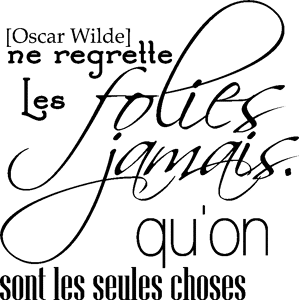 Des stickers muraux citations pour la déco ! Avec les stickers citation et ce sticker Les folies sont les choses qu'on ne regrette jamais - Oscar Wilde, vous pourrez enfin décorer l'intérieur de votre cuisine à votre guise avec leur aide ! Apportez à votre appartement l'esprit philosophique dont il