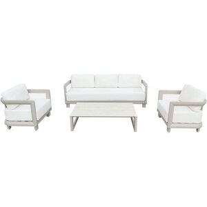 Cet ensemble bas pour 5 personnes en aluminium et plateau travertin crée une atmosphère apaisante sur une terrasse ensoleillée. Le confort enveloppant à la façon Berah Getah. Caractéristiques : Matière : Aluminium - Couleur : Taupe – Longueur : 125 cm – Largeur 68 cm – Hauteur : 34 cm - Poids : 82 kg - Garantie : 5 ans - Montage : Structure à assembler.