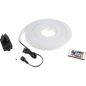 Tube LED RGB flexible avec 165 effets, bloc d'alimentation et télécommande, IP44 Tube lumineux extrêmement flexible avec revêtement en silicone, Kit prêt à l'emploi comprenant un adaptateur secteur, un câble d'alimentation et des clips de fixation., Système à fiche facile à installer, ne nécessitant aucune installation complexe., La fonction mémoire enregistre le dernier réglage lors de la mise hors tension., Non raccourcissable ni extensible, 180 LED puissantes SMD 5050 3 en 1 TCL RGB (mélange homogène des couleurs), Commande via télécommande IR, Convient pour une utilisation en extérieur IP44, Pour des domaines d'application tels que: clubs/écoles de danse, salons professionnels et aménagement de magasins, installation, restaurants, bars et hôtels., Fonctionnement silencieux, Possibilité d'application: montage mural, Contenu de l'emballage 1 x source lumineuse, 1 x adaptateur secteur externe, 1 x télécommande, 10 x clips de fixation, 10 x vis, 1 x manuel d'utilisation, Alimentation électrique: 12 V CC, Consommation électrique: 19 W, Classification IP: IP44, Classe de protection: Classe de protection III, Connexion électrique: Alimentation secteur via connecteur à vis à 2 broches (M) IP, Longueur du câble: Environ 1,6 m, Type de LED: 180 x SMD 5050 3 en 1 TCL RGB (mélange homogène des couleurs), Émission lumineuse: Top 9 mmFond 1,5 mm, Contrôle: Télécommande IR, Couleur de la lumière: Changement de couleurs, Durée de vie de la lampe: 30 000 h, Flux lumineux: 187 lm, Couleur du boîtier: Semi-transparent, Dimensions: Longueur: 500 cmLargeur: 12 cmHauteur: 21 cm, Poids: 1,67 kg, Classification du bruit: Classe 0 (aucun bruit), Adaptateur secteur externe, Alimentation électrique: 230 V CA, 50 Hz, Classification IP: IP20, Classe de protection: Classe de protection II, Connexions: Sortie: borne à vis enfichable, Sortie: 12 V CC, 2 A, 24 W, Couleur: Noir, Poids: 0,1 kg, Télécommande, Batterie: Pile bouton CR2025, Poids: 0,018 kg